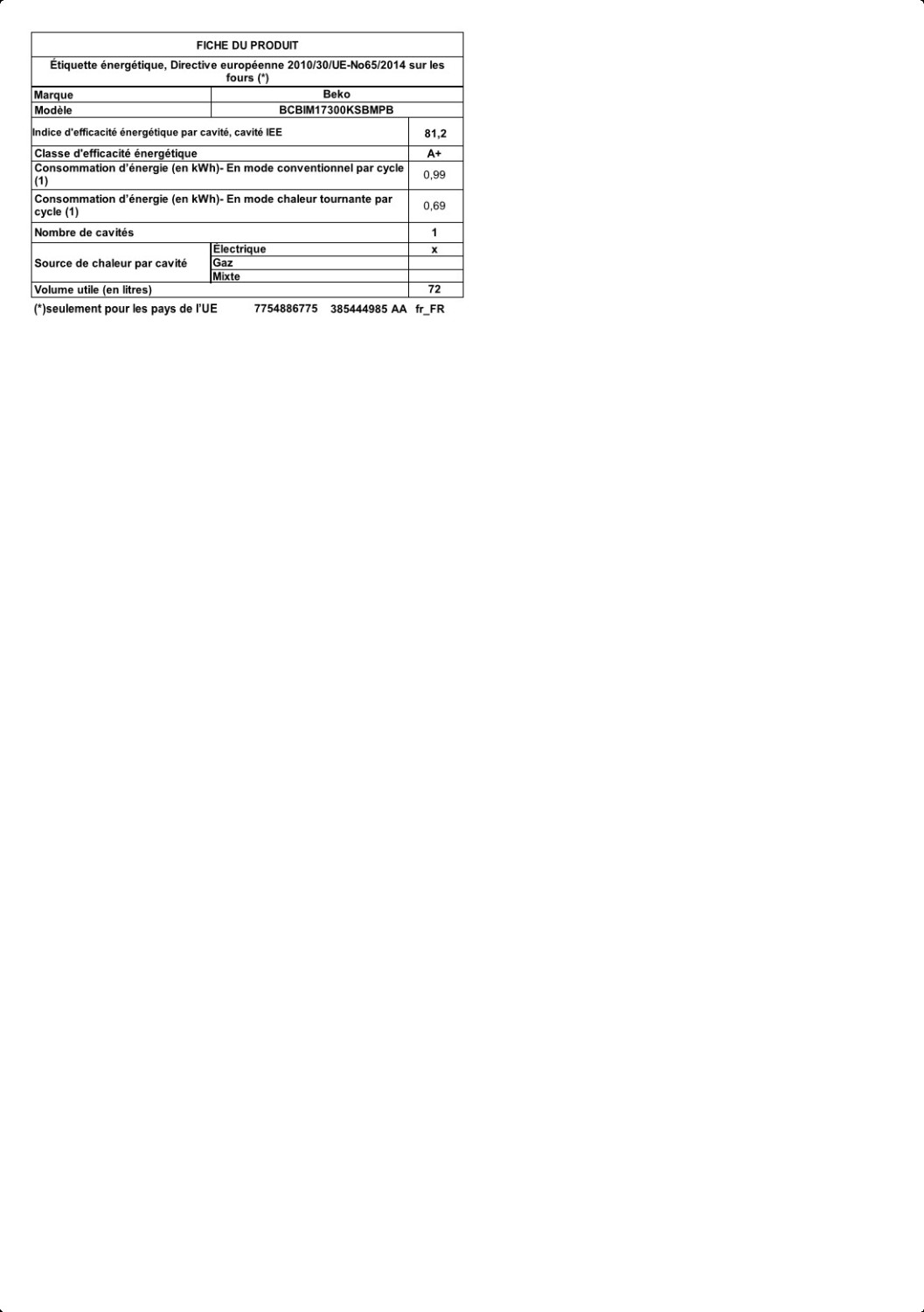 - Four encastrable BEKO BCBIM17300KSBMPB