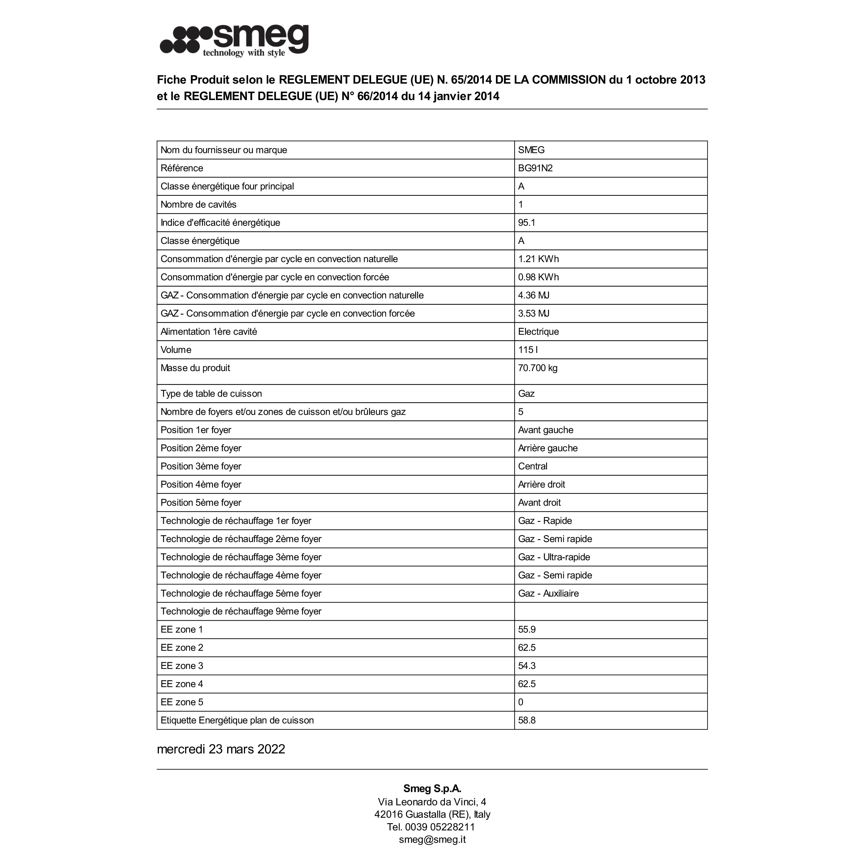 SMEG Piano de cuisson mixte BG91N2 pas cher